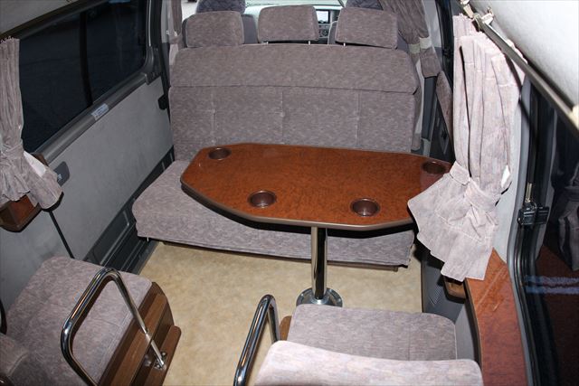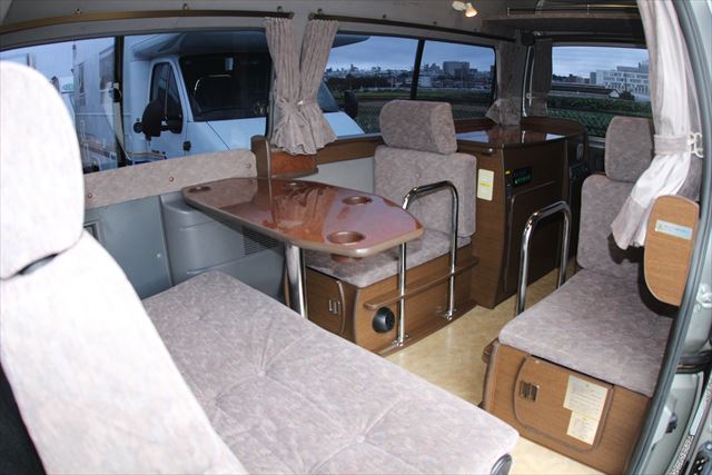 ワンボックス型ですが、車の後部スペースの後ろ側半分は冷蔵庫やシンクなどがしつらえてあるので外観でうける感じより手荷物を載せるスペースは狭いです。