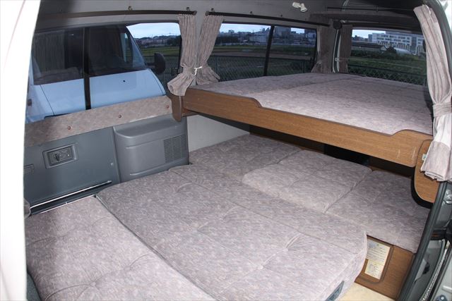・寝具は搭載していません。マットレスは敷いてありますが通常ご家庭で使用しているものの様な厚さはありませんので、キャンプマットや寝袋、家庭用寝具をご用意いただくとより快適です。